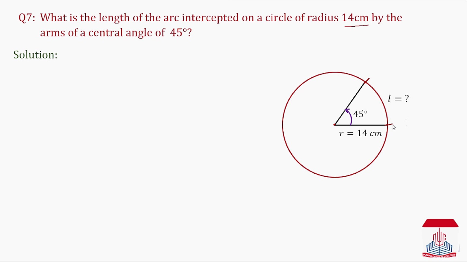Find The Length Of An Arc Of A Circle Of Radius 14 Cm