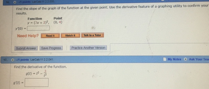 Find The Slope Of The Graph Of The Function At The Given Point Use The Derivative Feature