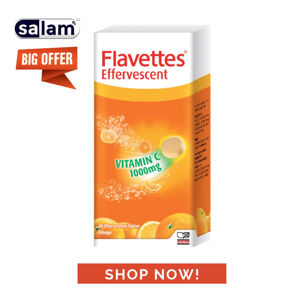 Flavettes Effervescent Vitamin C 1000mg 30 Orange Tablets