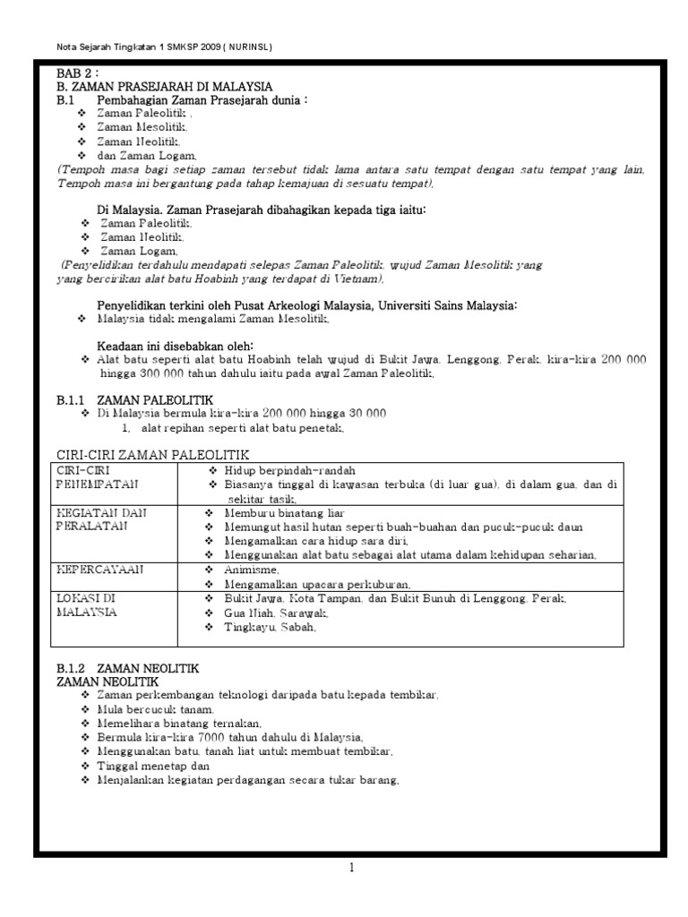 Nota Sejarah Tingkatan 1 Bab 3 Zaman Prasejarah