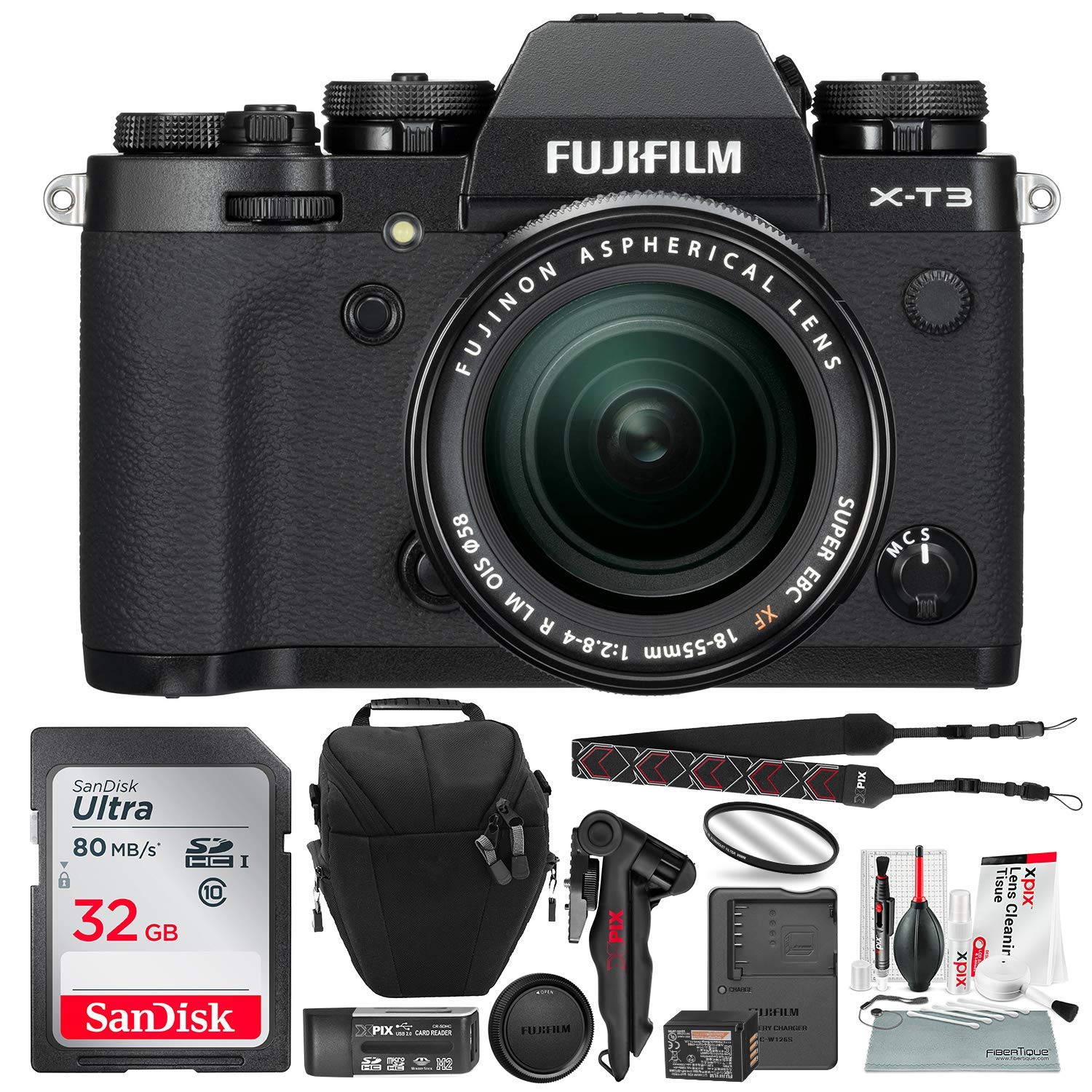 Amazon Com Fujifilm X T3 Mirrorless Digital Camera Black And 18 55mm Lens Kit With 32gb Card And Tripod Accessory Bundle Camera Photo