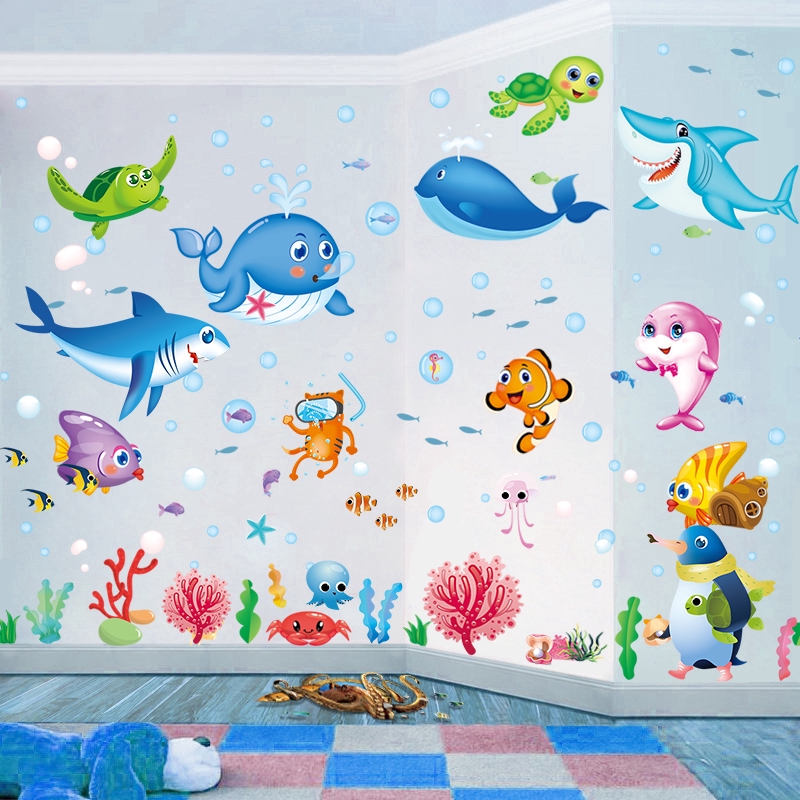 Kartun Stiker Dinding Ikan Laut Anak Anak Dinding Ruang Dekorasi Stiker Tk Koridor Pintu Masuk Stike Shopee Indonesia