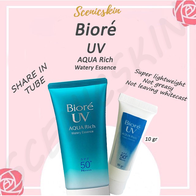 Share In Tube 10gr Sunscreen Sunblock Biore Uv Aqua Rich Watery Essence Spf 50 Pa Shopee Indonesia