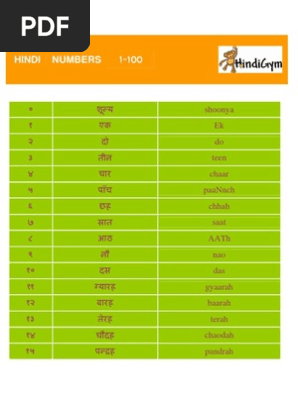 Hindi Numbers 1 100 In Words English Pronunciations Pdf Download