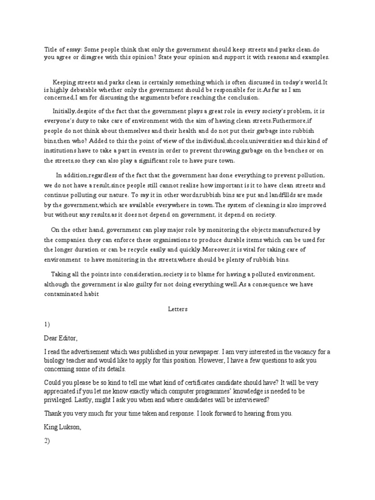 Essay Keeping Strets Clean Reason Waste