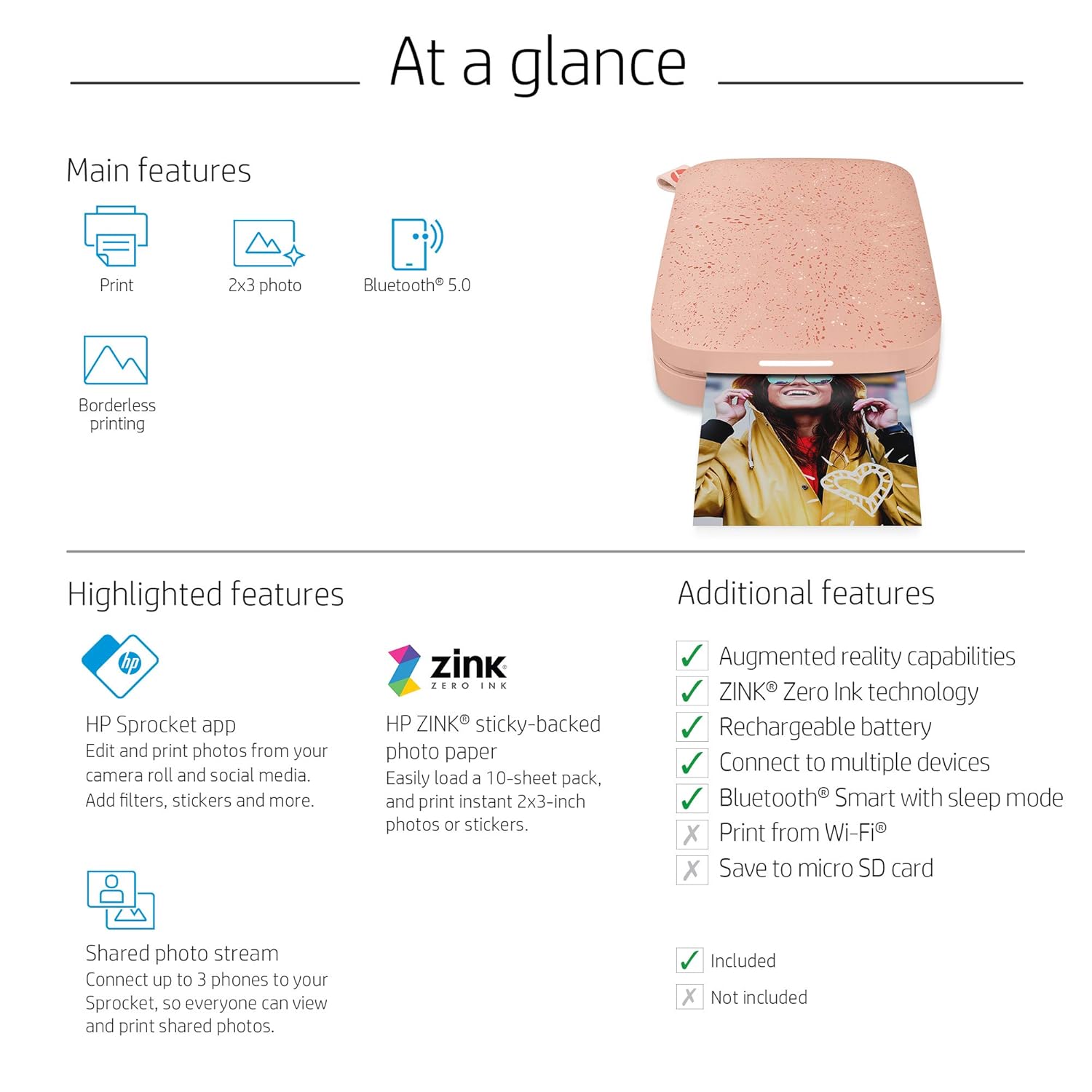 Hp Sprocket Portable 2x3 Instant Photo Printer Blush Pink Zink Paper Bundle Walmart Com Walmart Com
