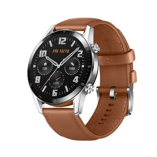 Huawei Watch Gt2 46mm Stainless Steel Leather Strap Brown Extra Saudi