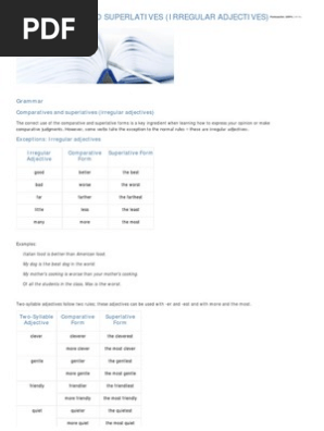 Irregular Adjectives Comparative Superlative Pdf Preview