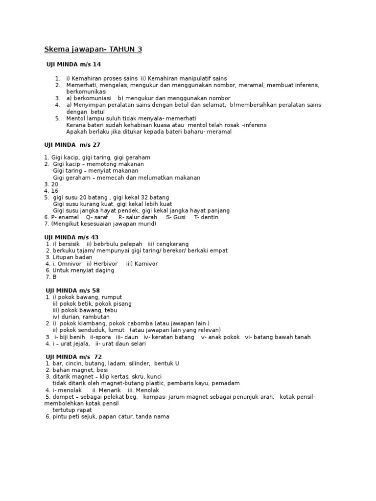 Skema Jawapan Sains Bku Teks Tahun 3