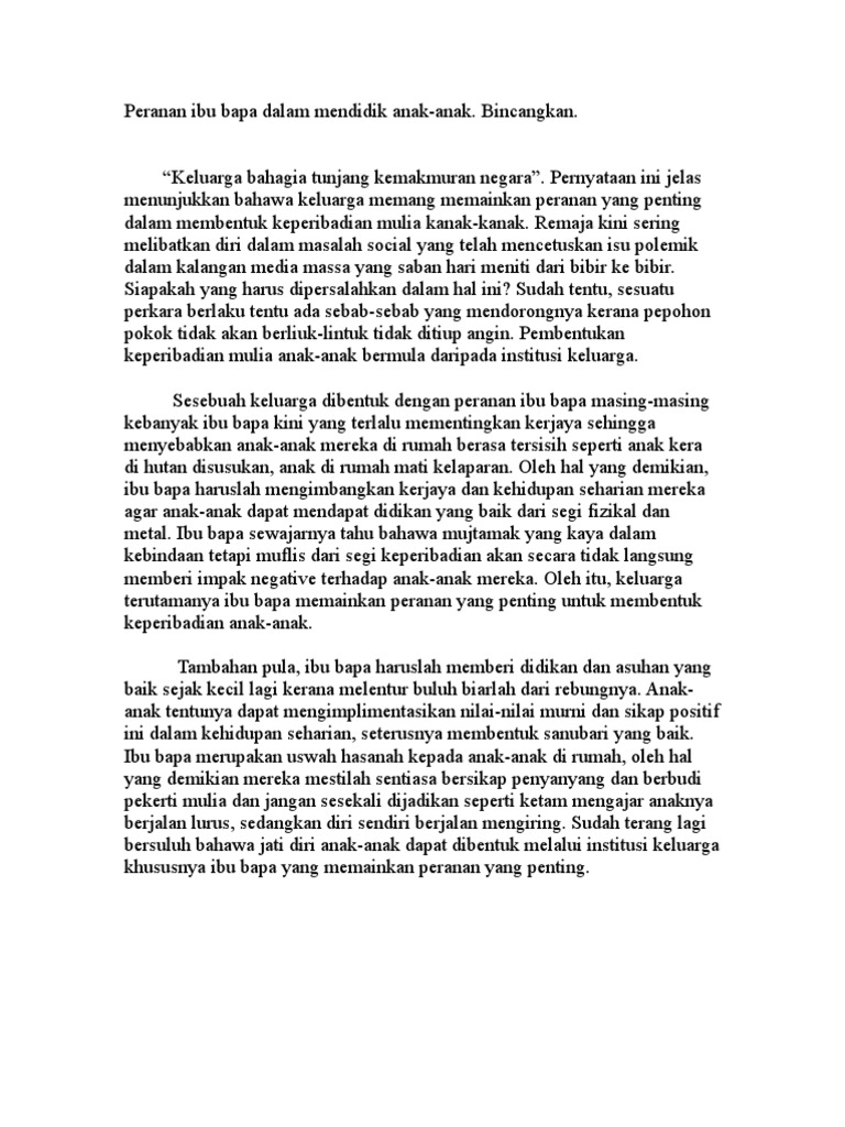 Peranan Ibu Bapa Dalam Membentuk Modal Insan Karangan Spm