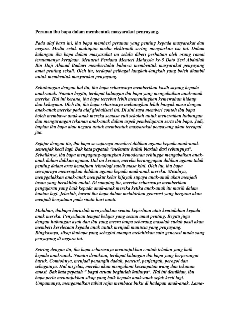 Karangan Peranan Ibu Bapa Dalam Membentuk Keluarga Bahagia Spm