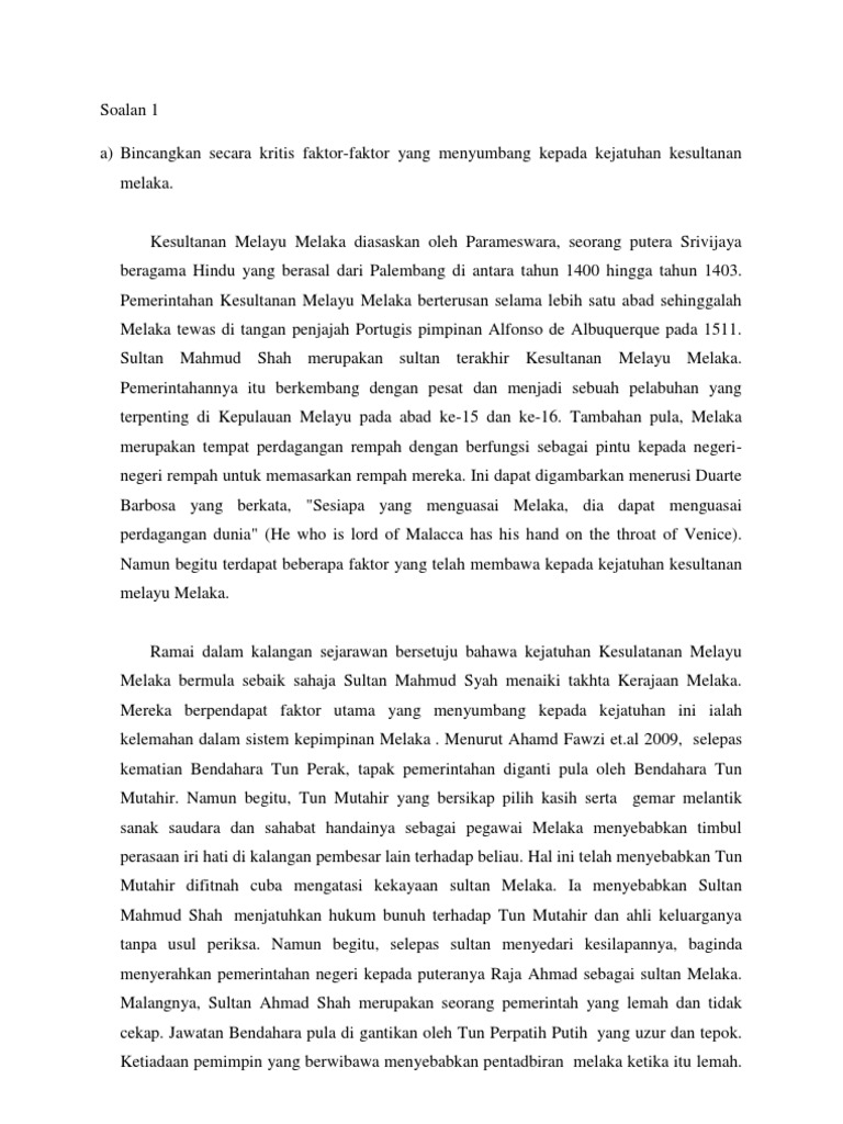 Faktor Kejatuhan Melaka Pdf Pendahuluan Kerajaan Kesultanan Melayu Melaka Merupakan Kerajaan Yang Telah Diasaskan Oleh Parameswara Pada Tahun 1400 Course Hero