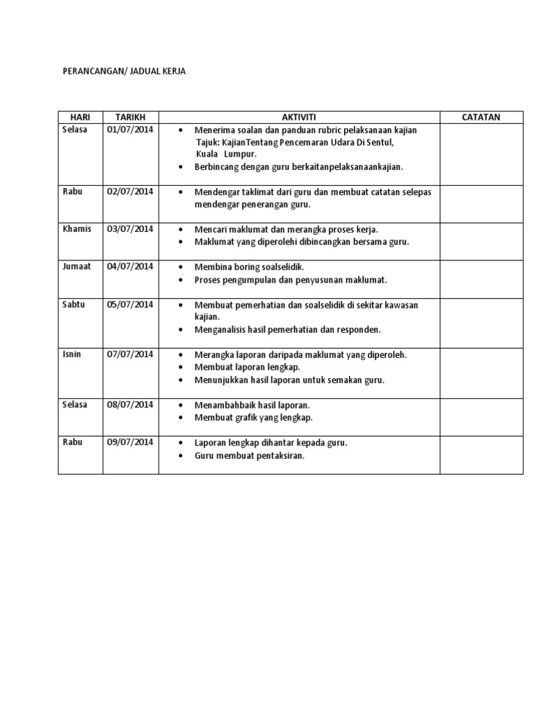 Contoh Jadual Kerja Kerja Lapangan Tugasan Geografi Cute766