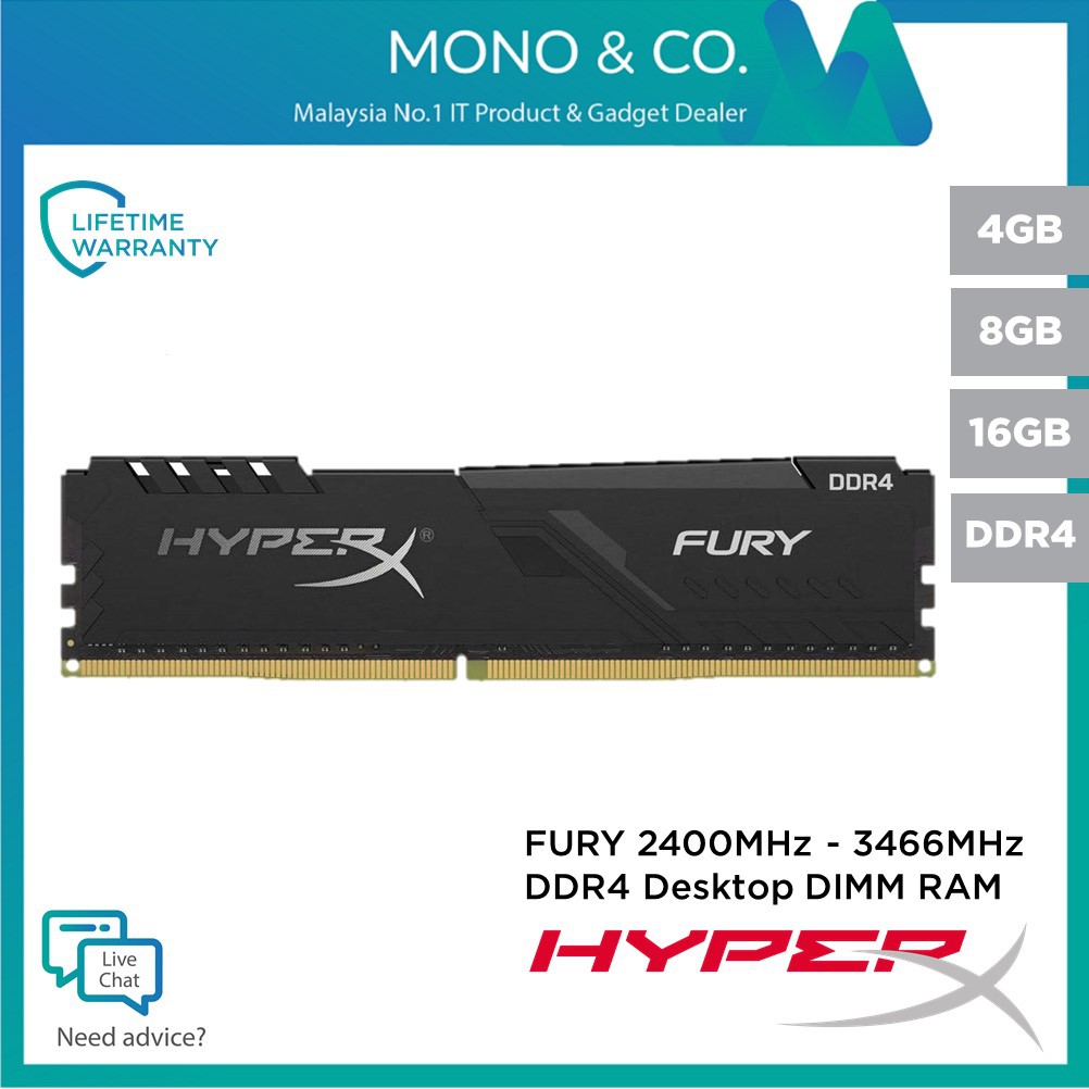 Kingston Hyperx Fury Ddr4 4gb 8gb 16gb 2400 2666 3200 3466 Mhz Single Kit Desktop Ram Shopee Singapore