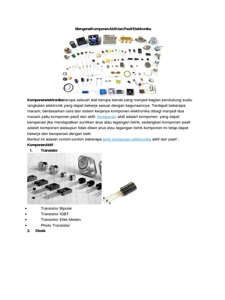 Komponen Elektronika Dan Fungsinya Komponen Aktif Dan Komponen Pasif