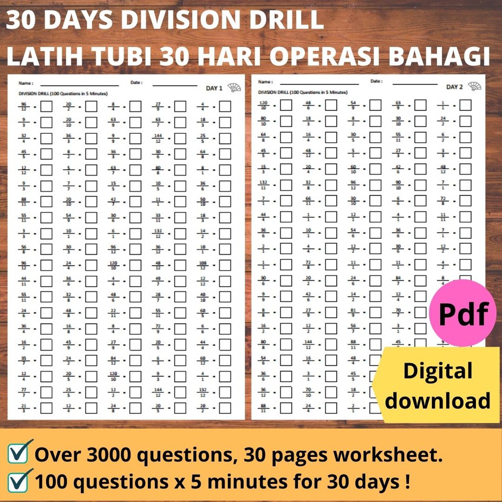 Printables Math Workbook Buku Matematik Latih Tubi Drill Operasi Bahagi Division Worksheet Year 1 2 3 Softcopy Pdf File Shopee Malaysia