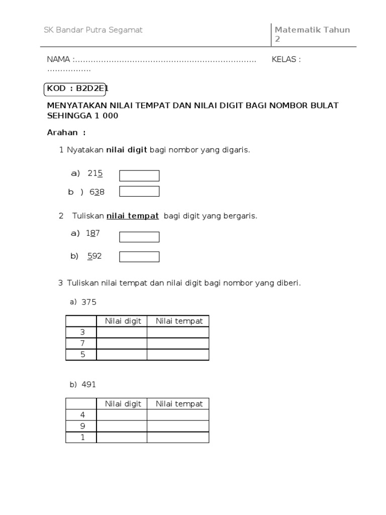 Latihan Matematik Tahun 2 Kelas Matematik Cikgu Kj Facebook