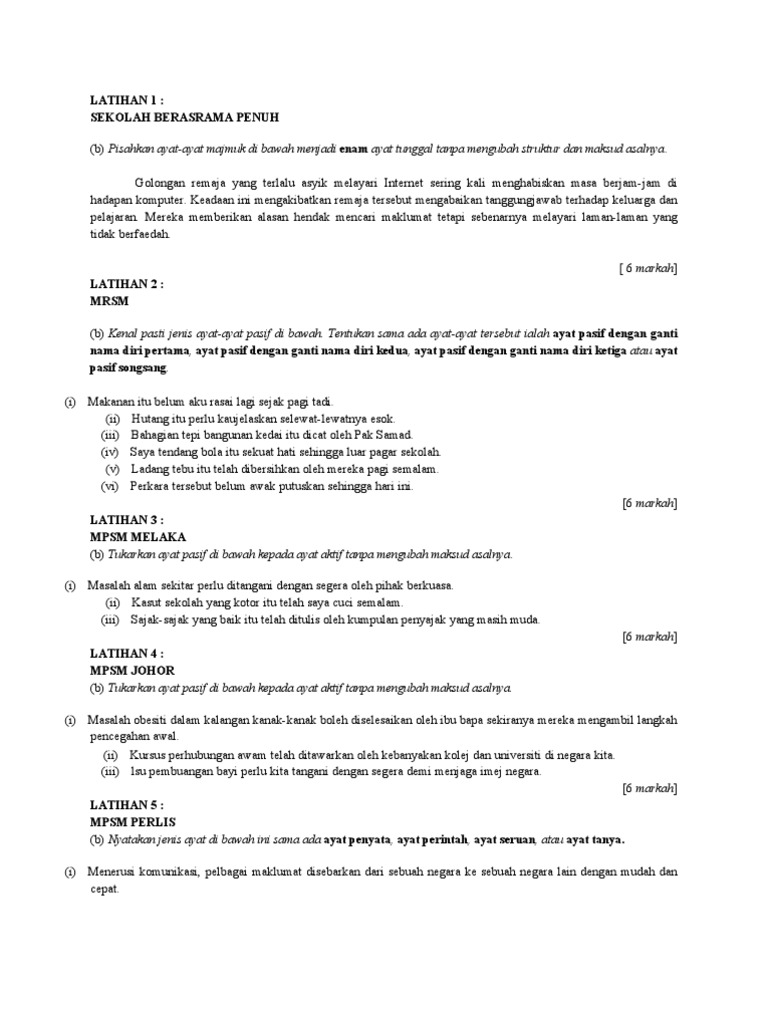 Latihan Tatabahasa Spm