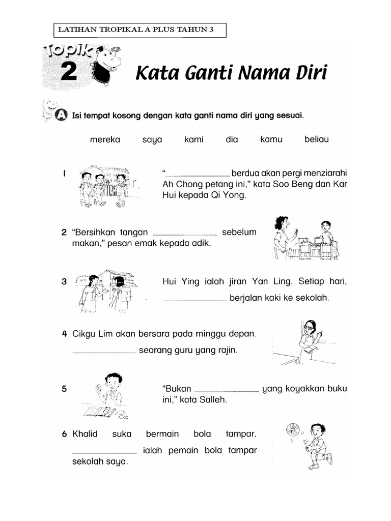 Kata Ganti Nama Diripilih Perkataan Yang Paling Sesuai Untuk Diisikan Ke Tempat Kosong Dalam Ayat Di Bawah I Malay Language Early Childhood Program Exam Papers