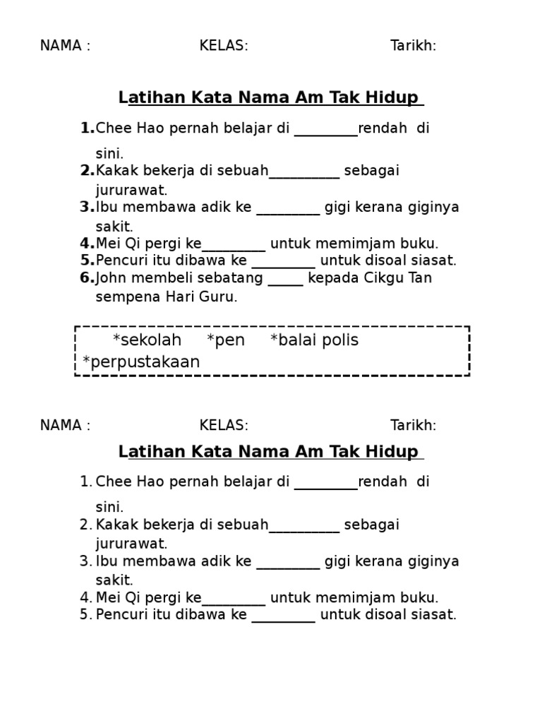 Latihan Kata Nama Am Tak Hidup Bukan Institusi Abstrak