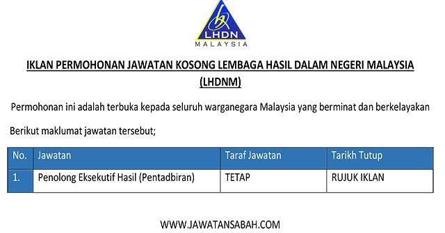 Iklan Permohonan Jawatan Kosong Lembaga Hasil Dalam Negeri Malaysia Lhdnm Jawatan Kosong Sabah