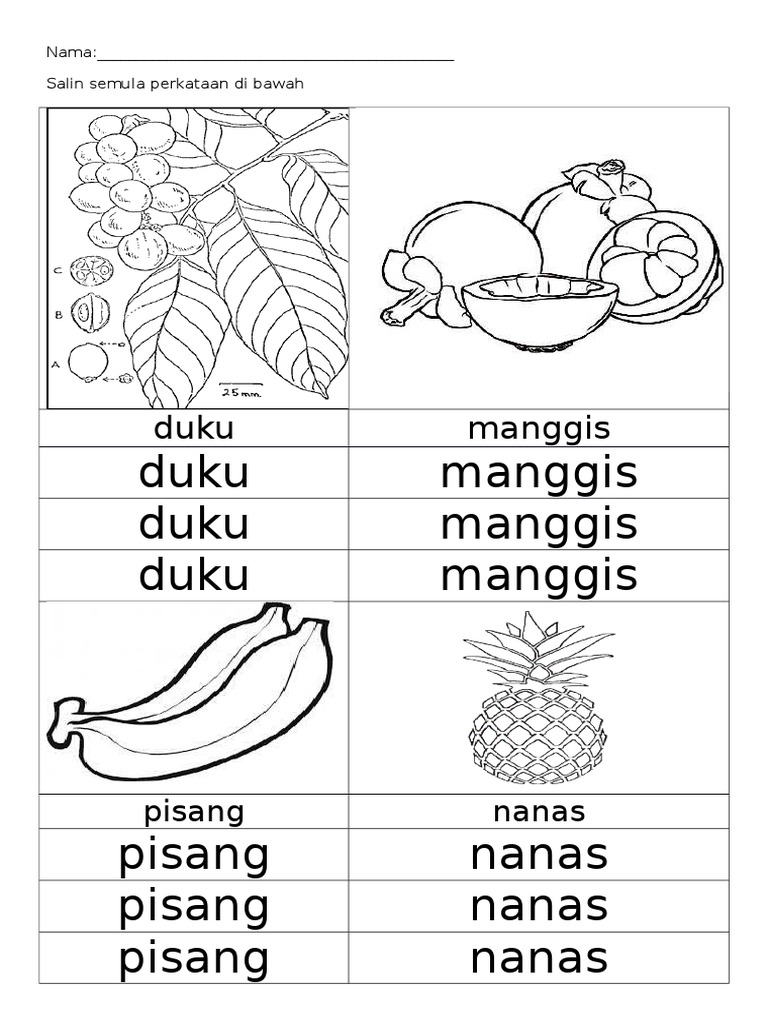 Gambar Buah Buahan Tempatan Drawing Tema Buahantuliskan Huruf Lembaran Kerja Gambar Di Rebanas Rebanas