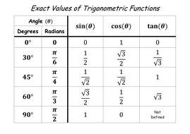 Table Of Exact Values Of Trigonometric Functions Teaching Resources