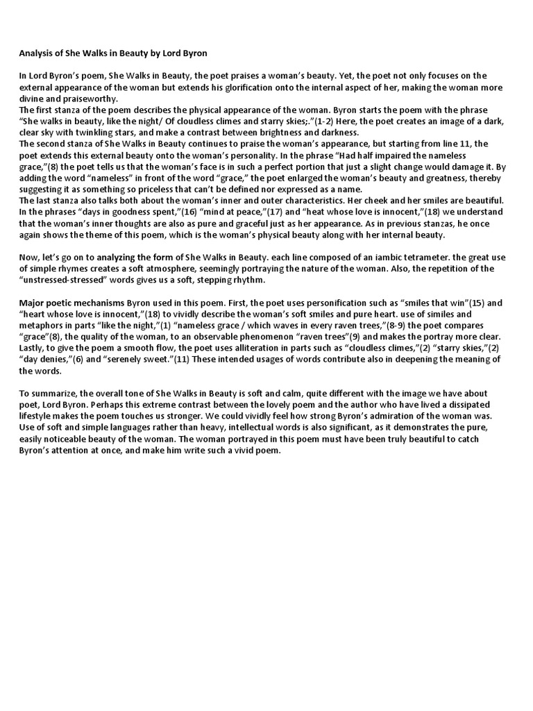 Lord Byron She Walks In Beauty Analysis Pdf