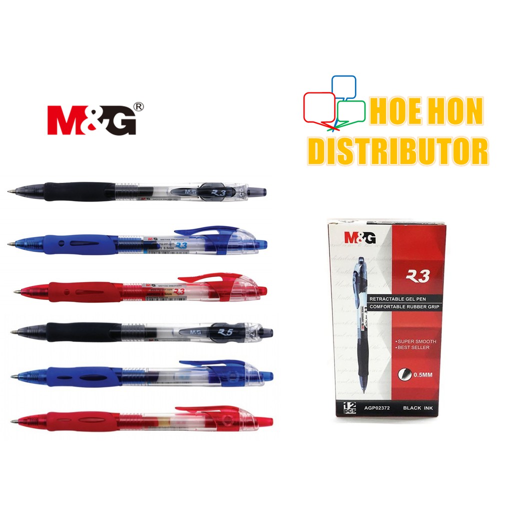 M G Retractable Gel Pen R3 0 5mm R5 0 7mm Black Blue Red Agp02372 Shopee Singapore