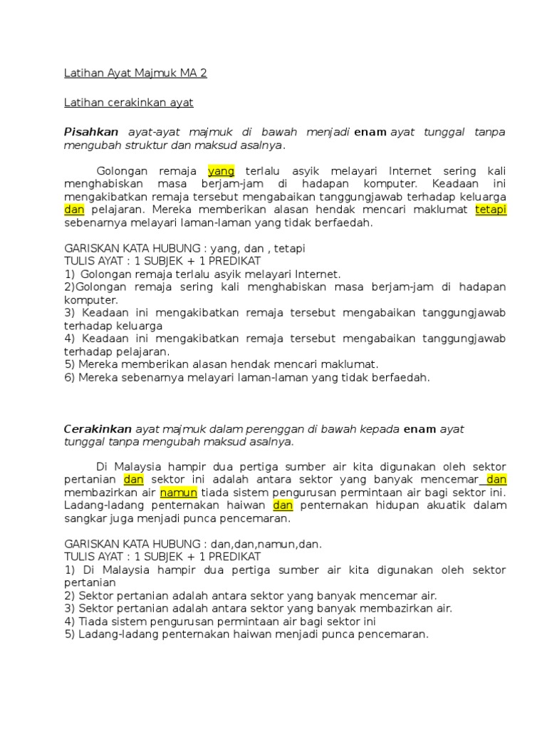 Cerakinkan Ayat Majmuk Dalam Perenggan Dibawah Docx Document
