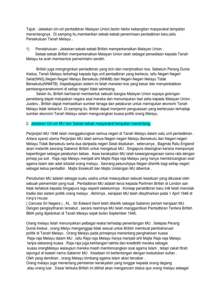 Doc Bab 2 Malayan Union Dan Persekutuan Tanah Melayu Nazhif Wan Yusoff Academia Edu