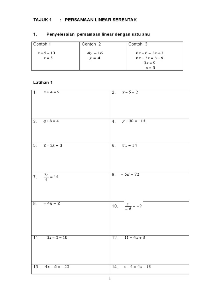 Soalan Matematik Tingkatan 1 Persamaan Linear