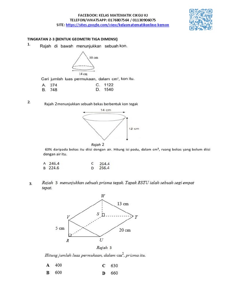 Bentuk Geometri Tiga Dimensi Tingkatan 2 Matematik Jom Cuba 6 3 26jc63