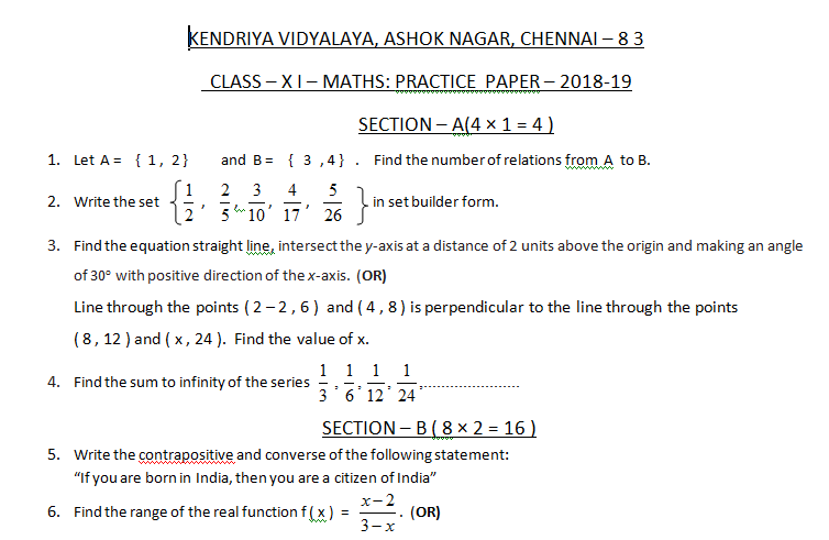 Kvasnapsmaths Blogspot In Xi Maths Practice Paper See Exam 2018 19