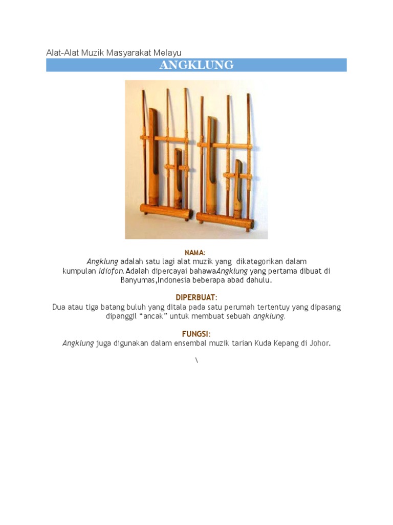 Nama Angklung Nama Alat Musik Tradisional Melayu