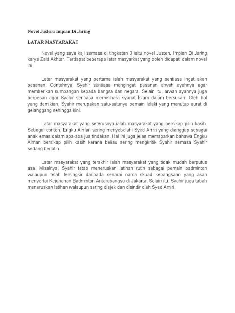 Latar Masyarakat Novel Justeru Impian Di Jaring