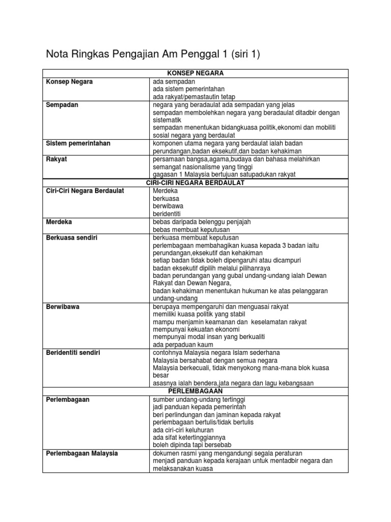 Nota Ringkas Pengajian Am 900 1 Penggal1