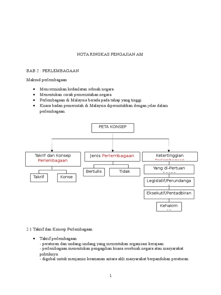 Nota Ringkas Pengajian Am Bab 2 Perlembagaan