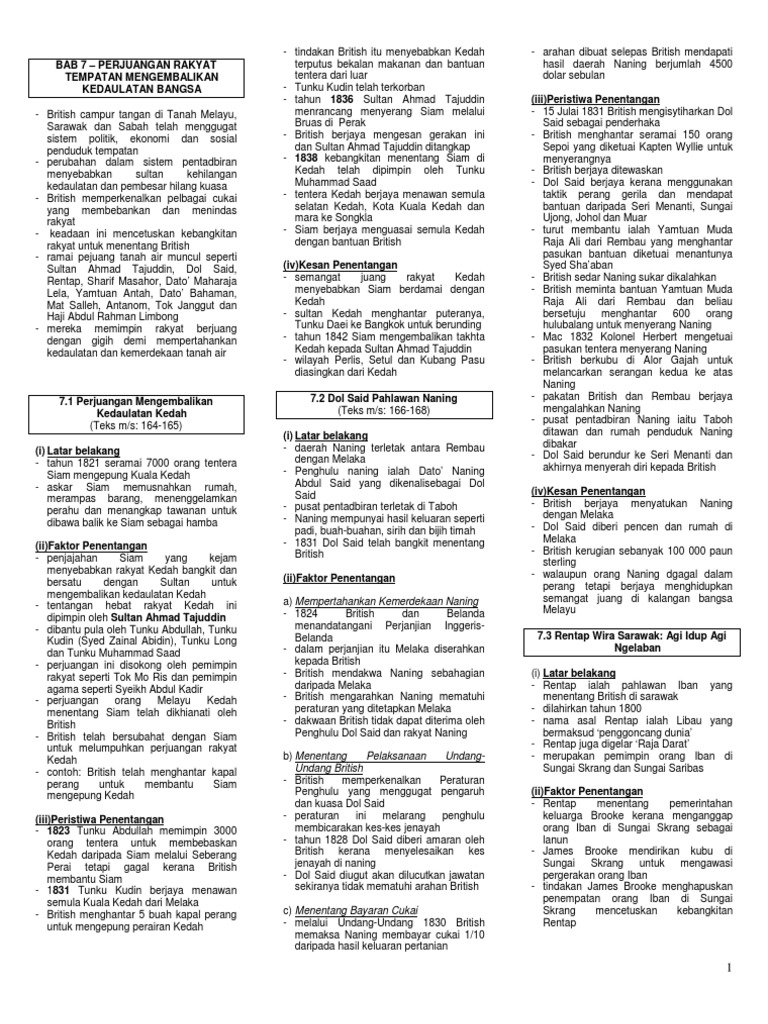 Nota Sejarah Bab 7 Tingkatan 2