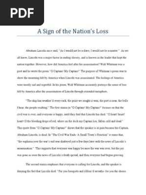 O Captain My Captain Argumentive Essay Abraham Lincoln Walt Whitman