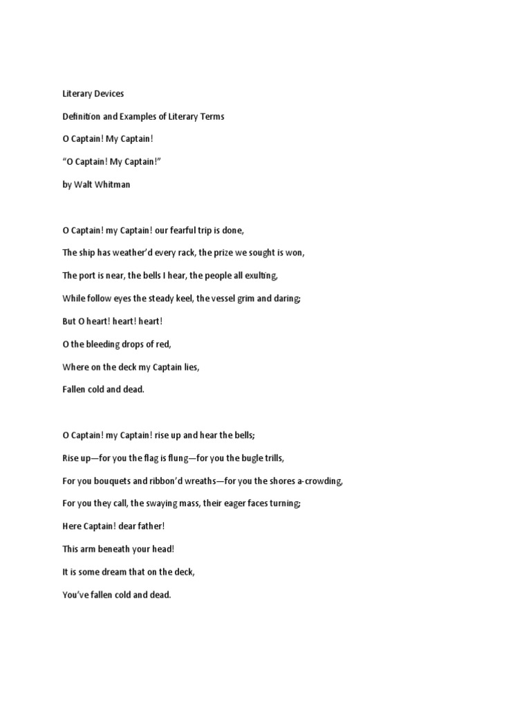O Captain My Captain By Walt Whitman Metre Poetry Poetic Devices