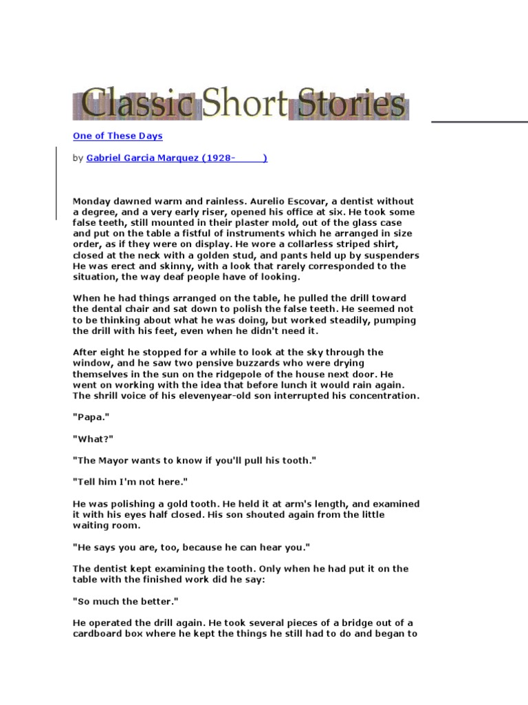 One Of These Days By Gabriel Garcia Marquez Pdf Document