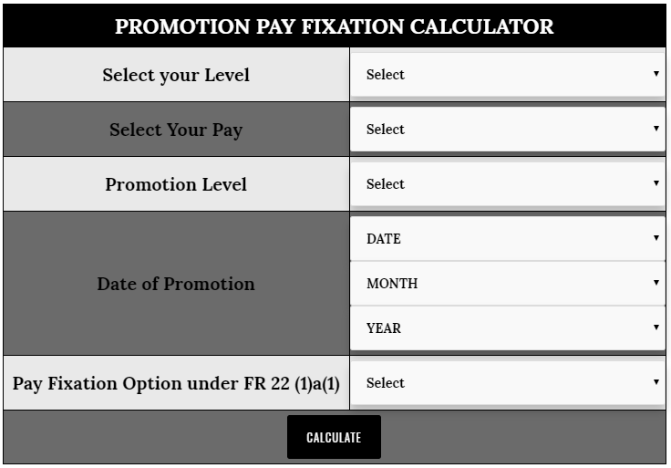 Calculator For Fixation Of Pay On Promotion Under Fr 22 1 A 1