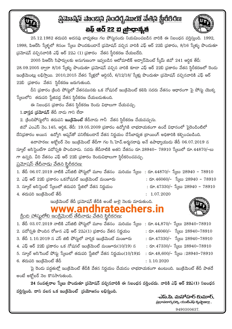 Promotion Fixation Fr 22 B Andhra Teachers Teachers Job Related Information