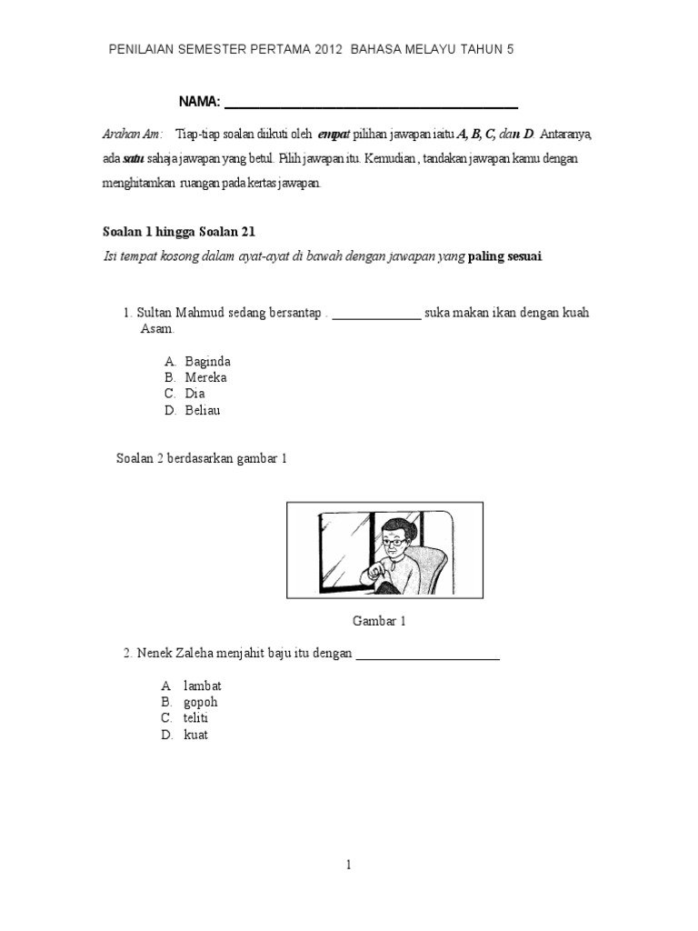 Kertas Soalan Bahasa Melayu Pemahaman Tahun 5 Kssr