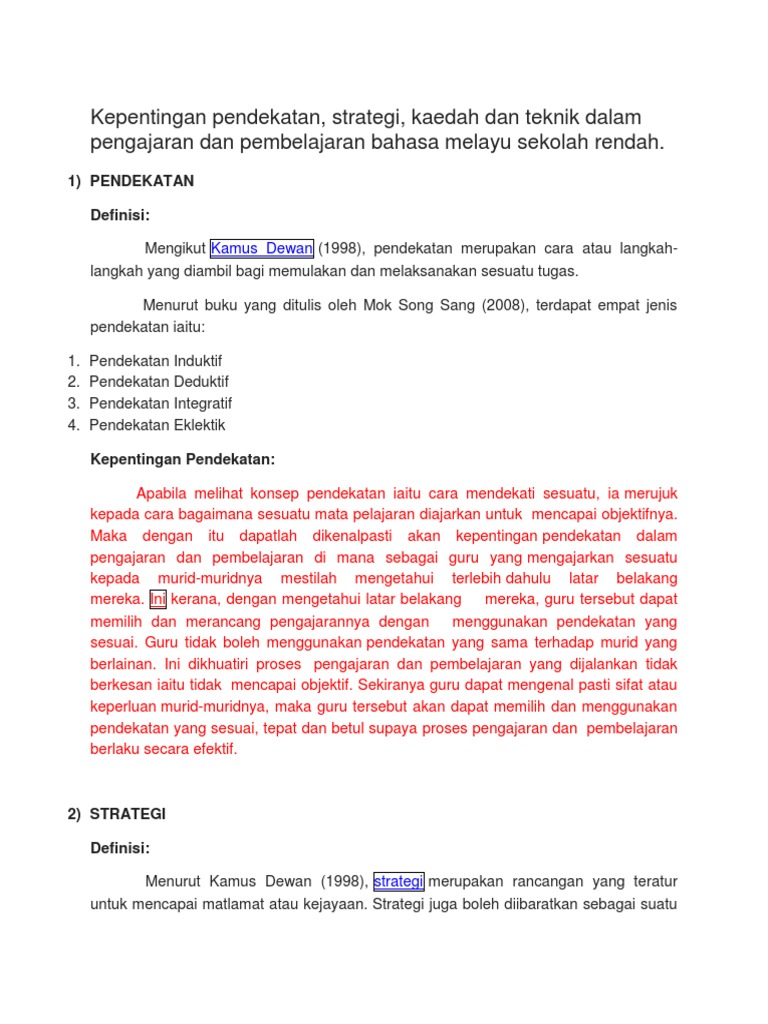 Apakah Perbezaan Antara Strategi Kaedah Pendekatan Dan Teknik Pengajaran Pdf Free Download