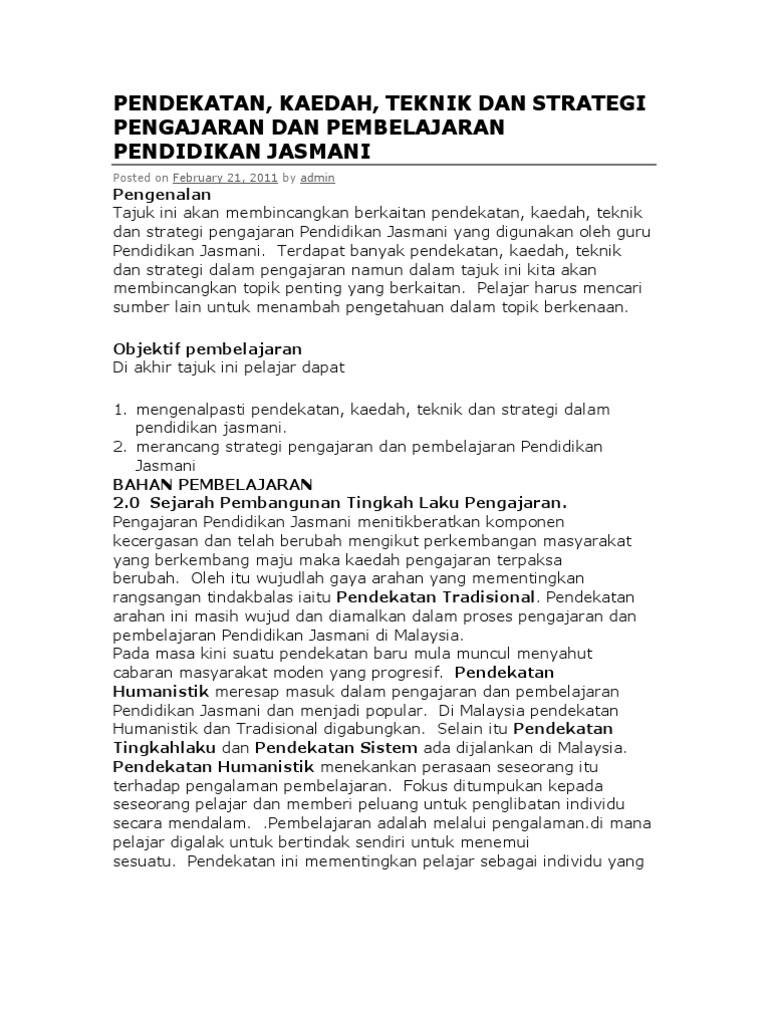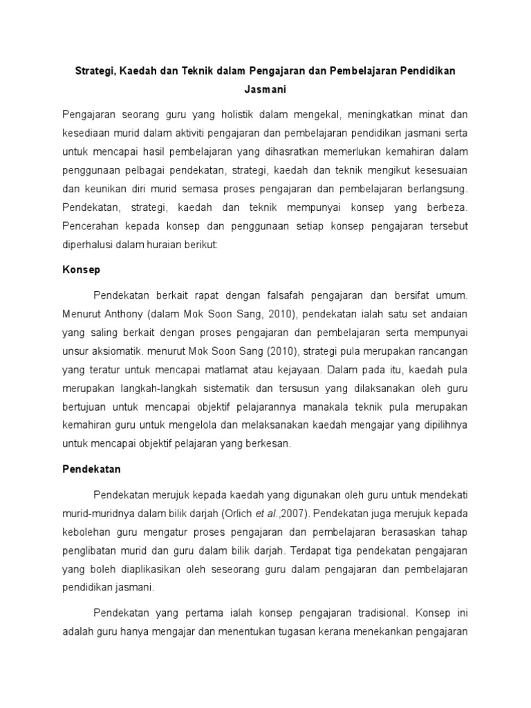 7 Strategi Kaedah Dan Teknik Pengajaran Dan Pembelajaran Pendidikan Jasmani 1 Pdf Document