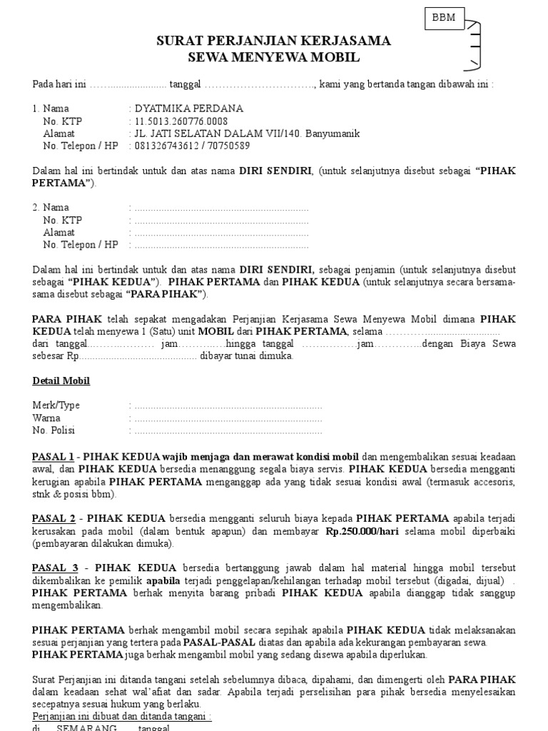 Contoh Surat Perjanjian Kontrak Yang Baik Dan Benar Detiklife