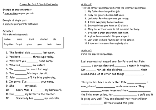 English Esl Present Perfect Or Past Simple Tense Worksheets Most Downloaded 236 Results