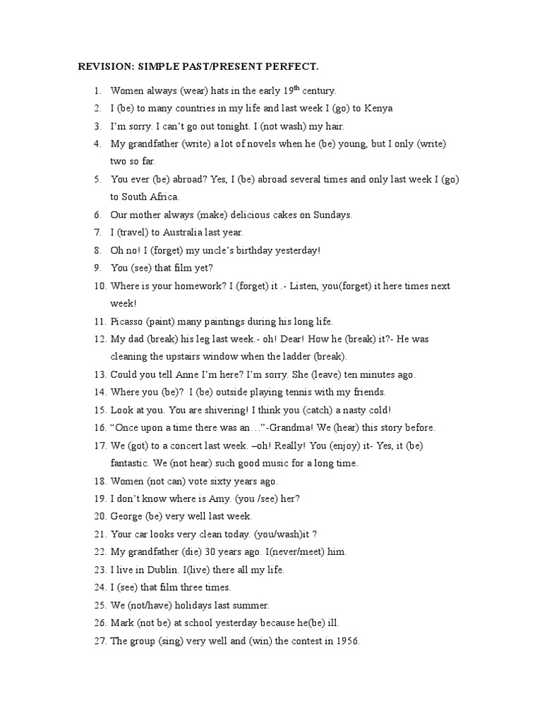 Doc Present Perfect Tense Simple Form Exercises A Fill In Since Or For Cecilia Paraguai Academia Edu